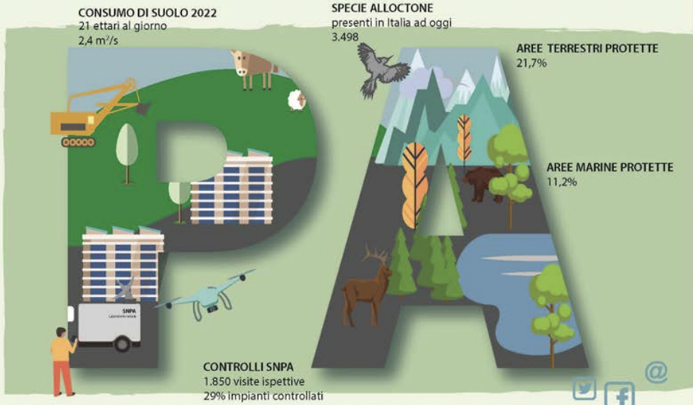 • Consumo di suolo. Tra il 2006 e il 2022, il consumo di suolo ha visto un aumento di oltre 120mila ettari. Nell'ultimo anno analizzato, si è registrato un consumo netto medio di suolo superiore ai 21 ettari al giorno, equivalenti a 2,4 metri quadrati al secondo. Questo incremento segna una preoccupante deviazione dall'obiettivo di azzeramento del consumo netto di suolo fissato dall'Ottavo programma di azione ambientale, in particolare dopo i segnali di rallentamento osservati nel 2020;