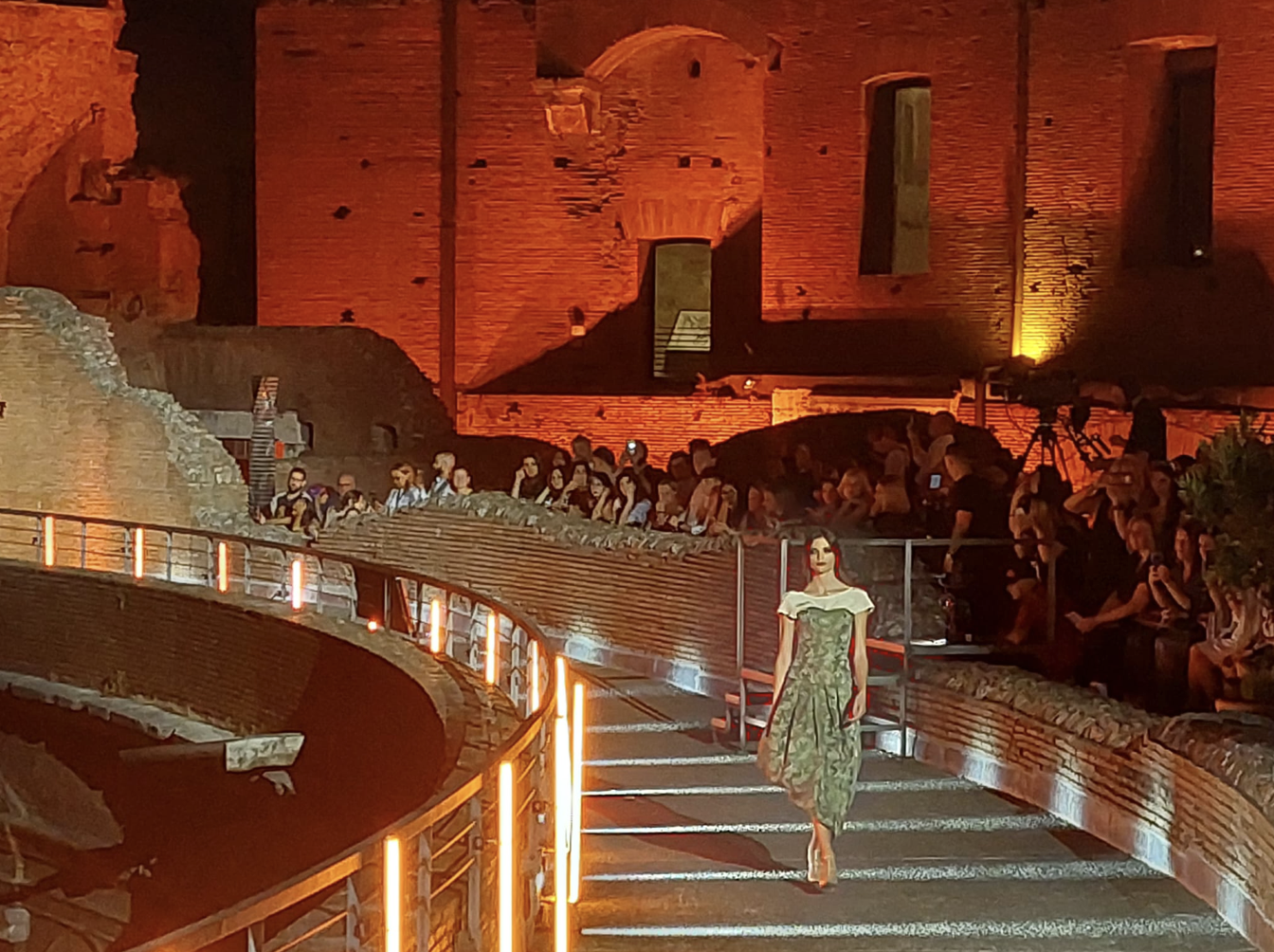 La sfilata narrata. A conclusione della prima giornata della manifestazione, si è svolta la cosiddetta “sfilata narrata” in cui una voce fuori campo ha descritto le caratteristiche più innovative e sostenibili dei brand che modelle e modelli hanno indossato sfilando sulla millenaria passerella romana nella cornice dei Fori Imperiali nei Mercati di Traiano. La maggior parte dei capi che hanno caratterizzato l’edizione 2022 della sfilata erano abiti da sera per sfatare l’assunto che la moda sostenibile non sia elegante. Tra questi, ad esempio, il brand SHESIDE che ha presentato un abito lungo a motivi floreali che utilizza l’11,7% in meno di CO2 e -89% di acqua rispetto ad abiti in nylon cotone convenzionali.