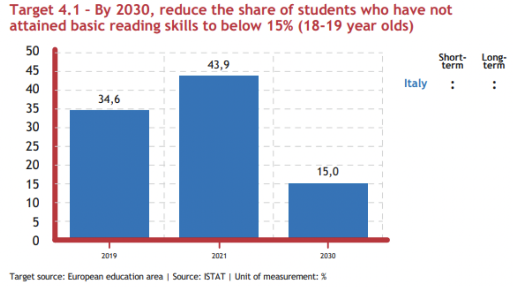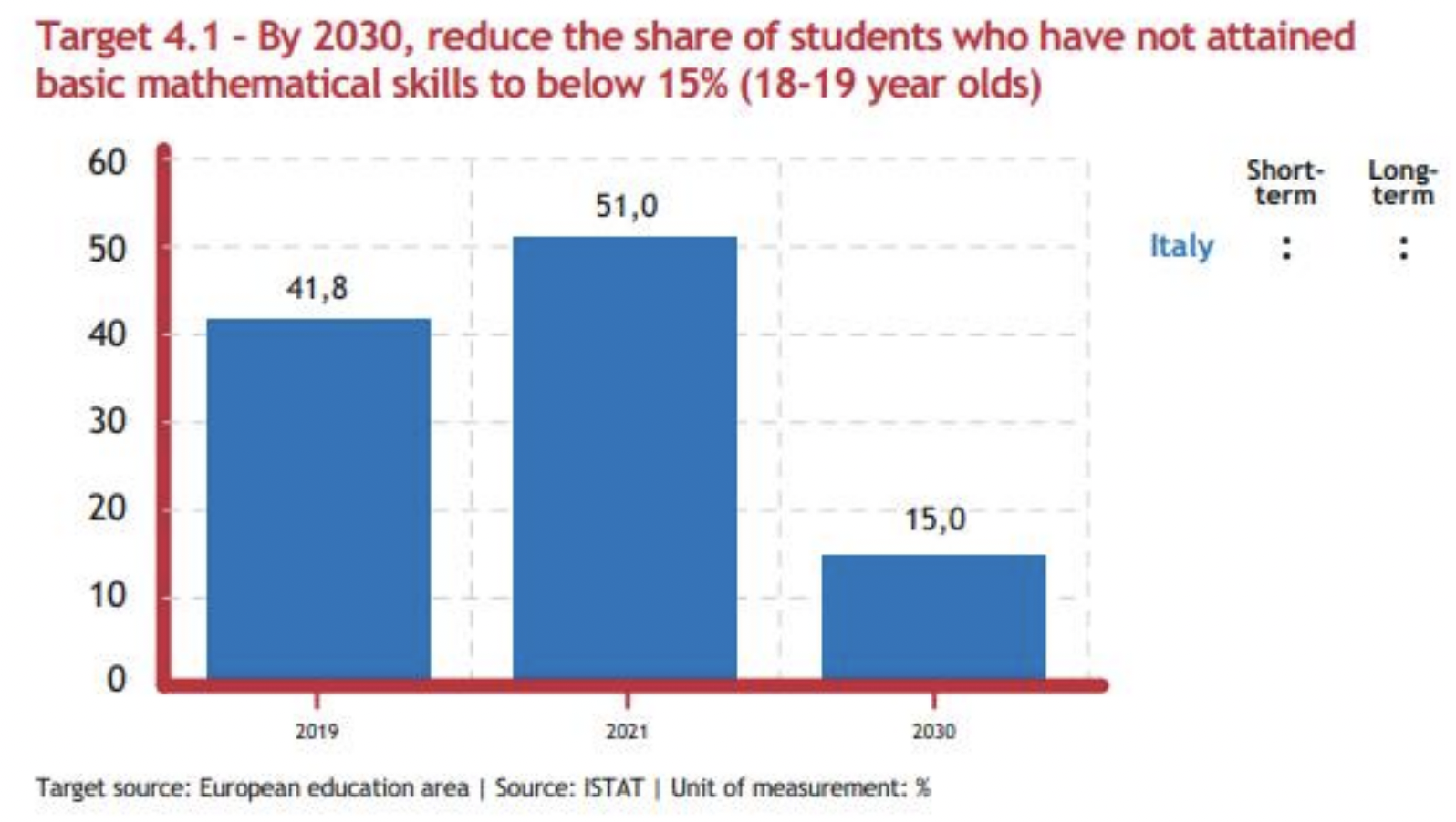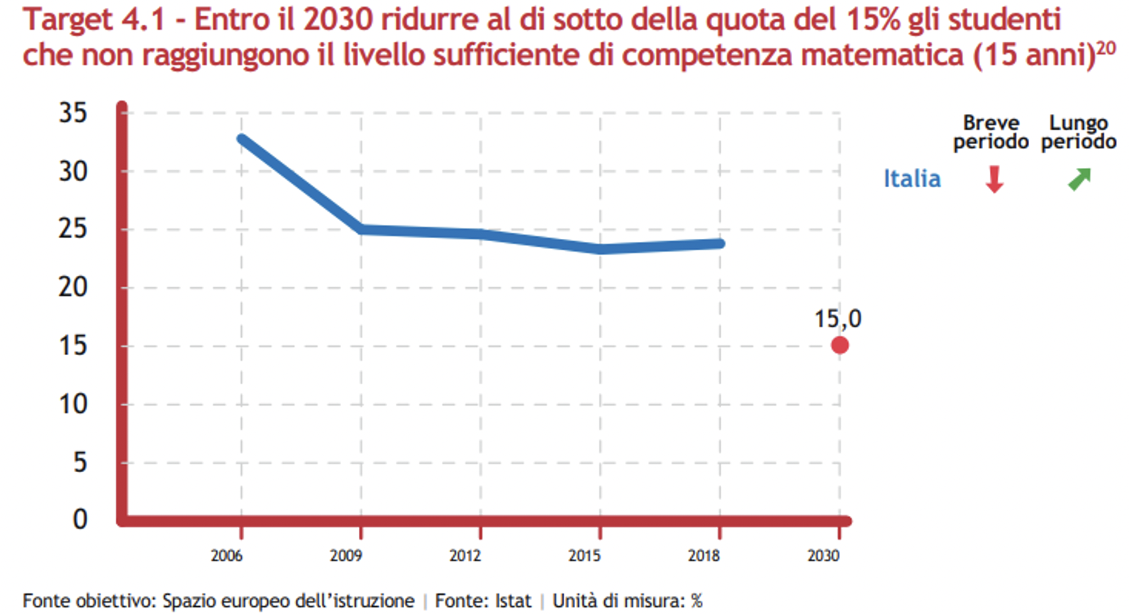 A che punto siamo. Il Paper analizza l’impatto delle politiche pubbliche a supporto dei giovani (nel Pnrr e nella Costituzione) e offre un focus sull’andamento del Goal 4 “Istruzione di qualità” e del Goal 8 “Lavoro dignitoso e crescita economica” dell’Agenda 2030. Di seguito vengono riportati alcuni dati tratti dalla versione più aggiornata del Rapporto annuale dell’ASviS.