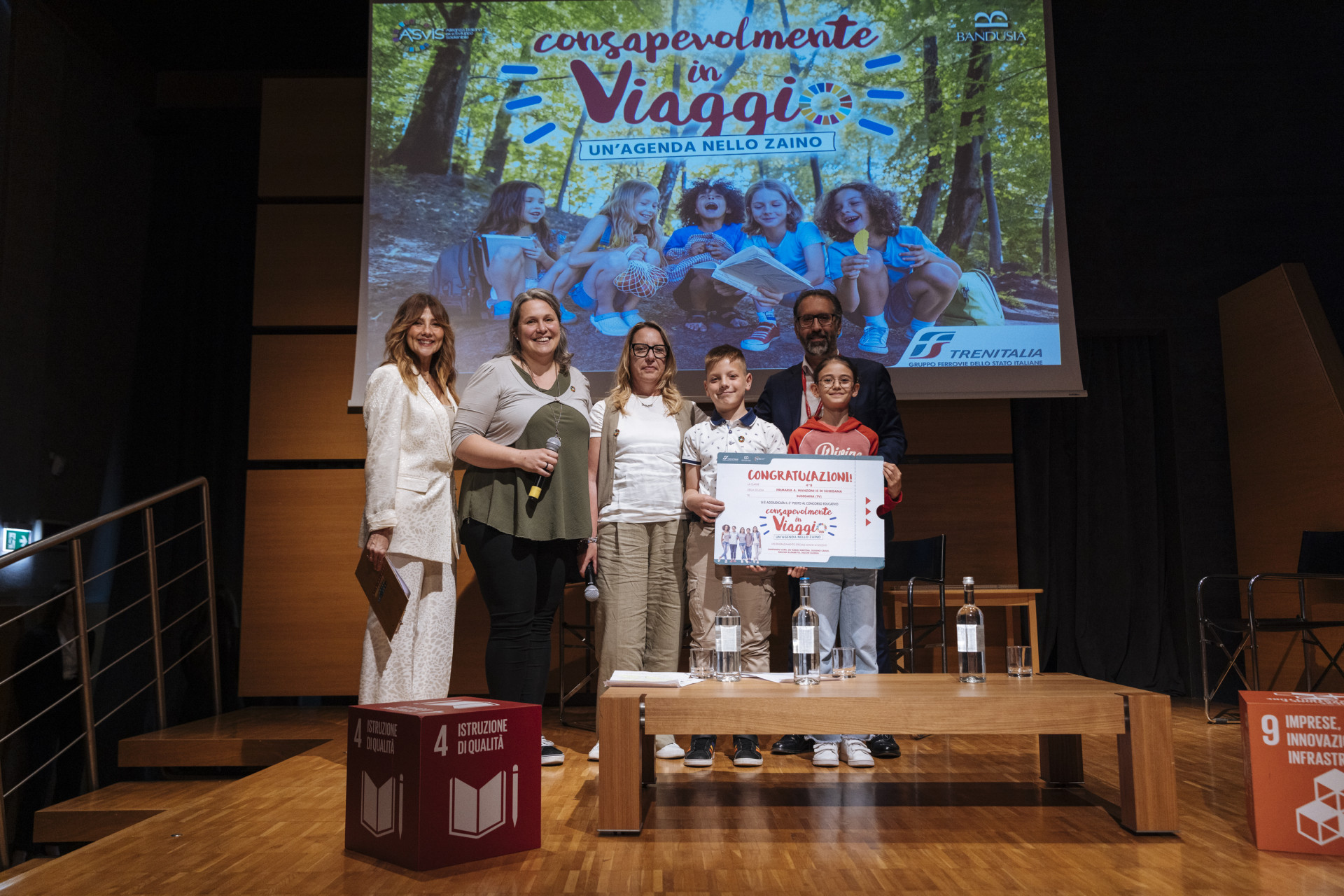 Sono stati premiati sette istituti scolastici, provenienti da Rovigo, Potenza, Pavia, Agrigento, Milano, Modena e Treviso: quattro per il concorso “Facciamo 17 Goal. La scuola e l’Agenda Onu 2030 per uno sviluppo sostenibile”, promosso dal ministero dell’Istruzione e del merito (Mim) e dall’ASviS, aperto alle scuole statali e paritarie e ai Centri provinciali per l’istruzione degli adulti (Cpia); tre per “Consapevolmente in viaggio. Un’agenda nello zaino”, promosso da Trenitalia (Gruppo FS) e realizzato da Bandusia in collaborazione con l’ASviS. Docenti, alunne e alunni saliti sul palco hanno presentato con entusiasmo i progetti vincitori (qui la lista completa), che hanno spaziato su numerosi fronti: dall’orto didattico innovativo ed ecosostenibile al riciclo in classe, dall’uso responsabile del riscaldamento all’inclusione di studenti di diverse nazionalità. E poi la guida turistica eco-friendly sulla tratta Milano-Parigi, il viaggio sostenibile con il trenino elettrico e l’indagine sulla mobilità, fino all’“intervista” a Marco Polo come guida simbolica e rispettosa dell’ambiente.
