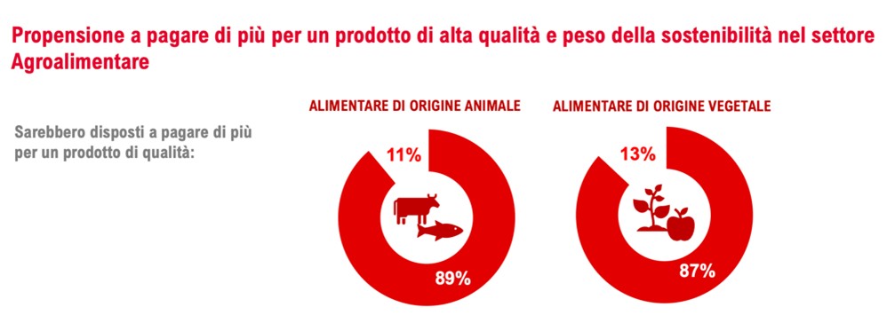 Nel comparto alimentare, la sostenibilità è sinonimo di qualità e salute. Il 60% degli italiani si considera un consumatore etico, e l’89% è disposto a pagare di più per prodotti animali sostenibili (87% per quelli vegetali). Per il consumatore, un alimento di qualità è prodotto in Italia (36%), con processi che riducono l’uso di sostanze chimiche (34%), certificazioni ambientali (30%) e attenzione alla filiera (33%). Il 52% ritiene che le aziende italiane siano più attente alla qualità rispetto a quelle europee.