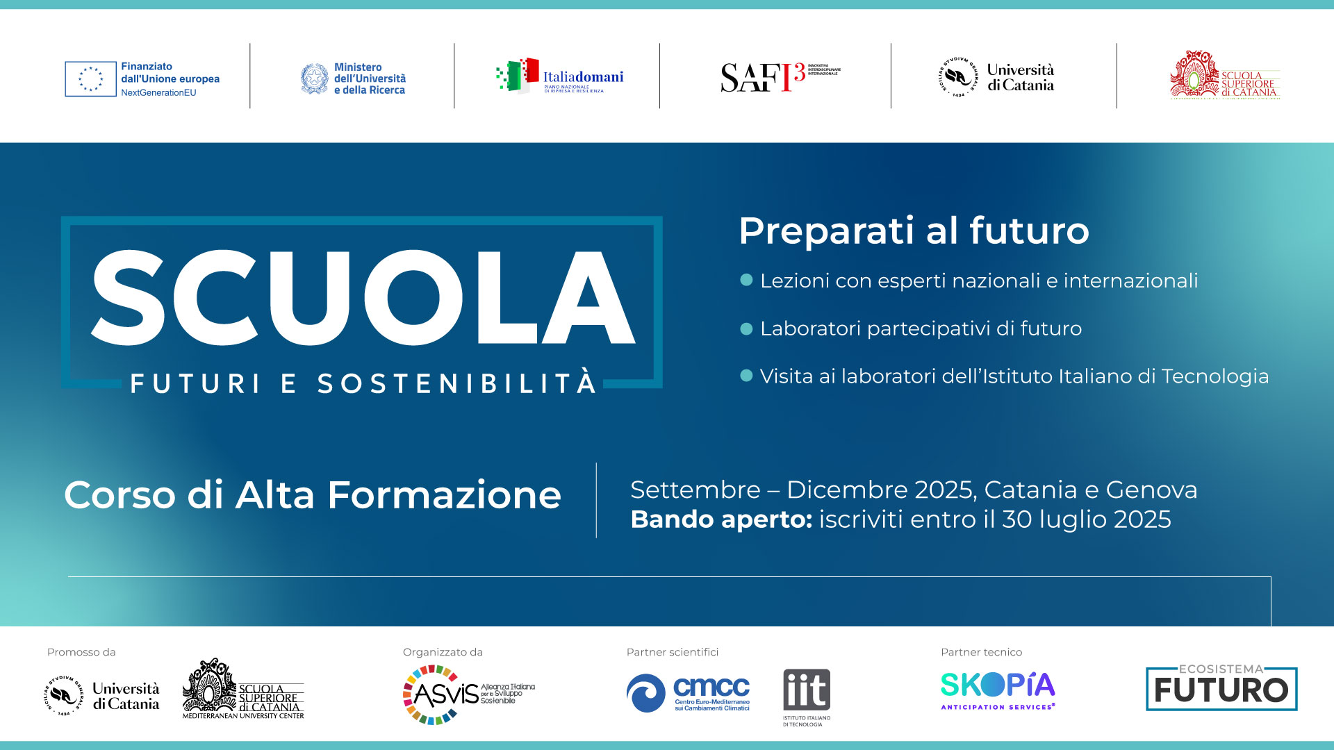 Il bando della Scuola “Futuri e Sostenibilità” è stato ufficialmente prorogato al 30 luglio 2025.