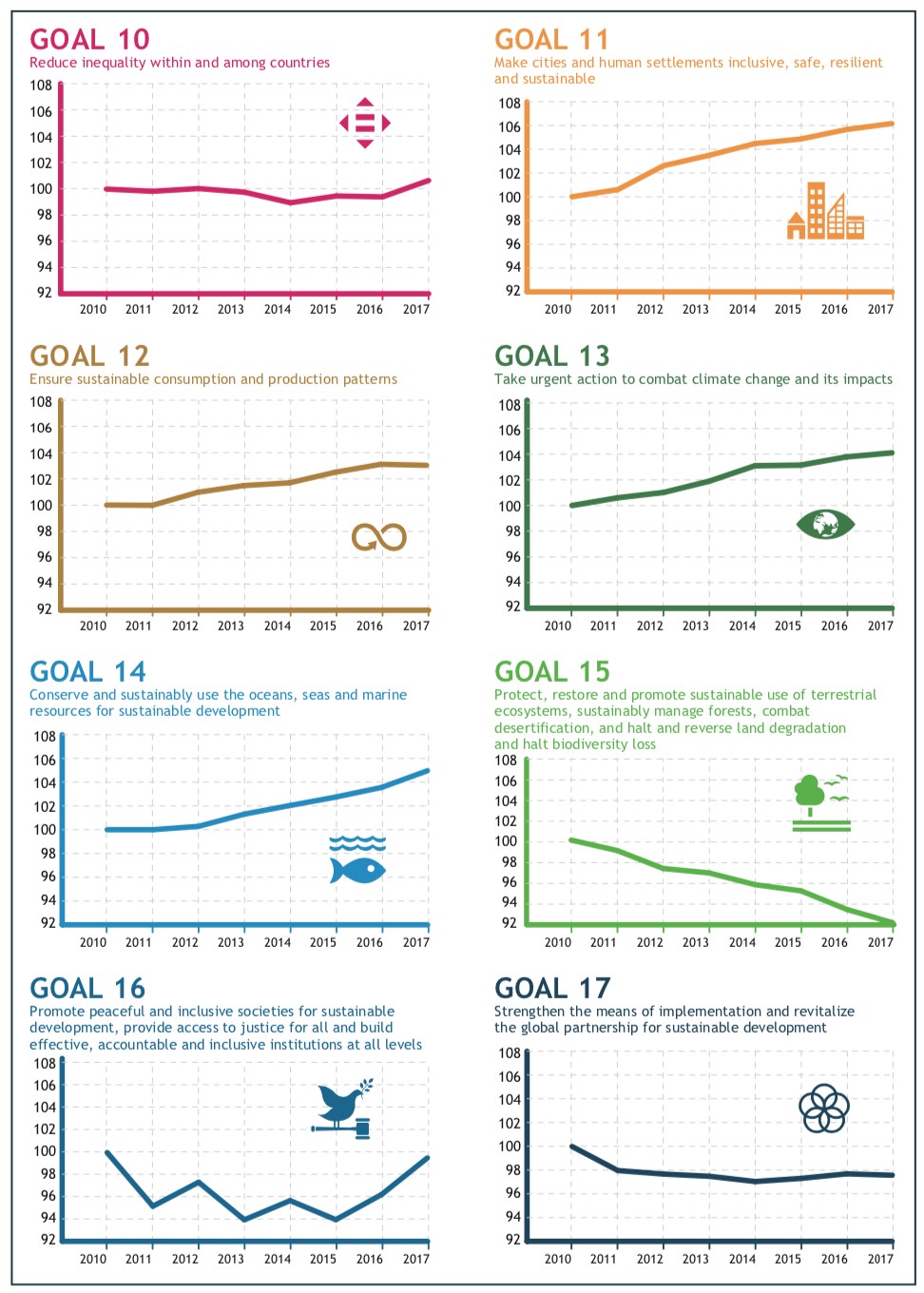 Infine, la situazione risulta stabile per l’Obiettivo 1 sulla povertà; per l’Obiettivo 2 sulla fame; per l’Obiettivo 9 su innovazione infrastrutture; per l’Obiettivo 10 sulla riduzione delle disuguaglianze; per l’Obiettivo 16 su pace, giustizia e istituzioni solide.