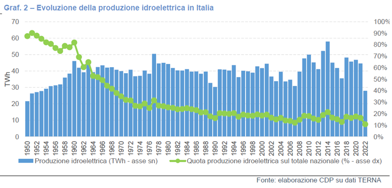 Infine, gli interventi di manutenzione e ammodernamento, attraverso anche il ricorso a nuove tecnologie e alla digitalizzazione, potrebbero migliorare la producibilità e la flessibilità degli impianti, riuscendo a garantire buone rese anche in condizioni di minore disponibilità della risorsa idrica.