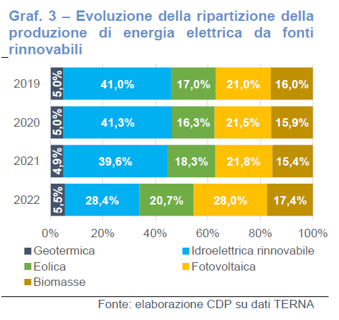 Tuttavia, nonostante la performance particolarmente negativa, l’idroelettrico a fine 2022 è ancora la prima fonte di produzione di elettricità rinnovabile con il 28,4% del totale nel Paese.