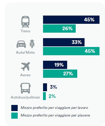 - intermodalità: il 71% degli italiani sarebbe incentivato a viaggiare in treno se vi fosse una maggiore integrazione con altri mezzi di trasporto;