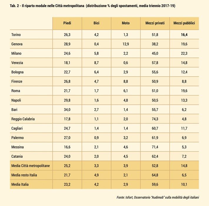 Il quinto rapporto “MobilitAria 2022”, realizzato da Kyoto Club e dall’Istituto sull’inquinamento atmosferico del Consiglio nazionale delle ricerche (Cnr-Iia), in collaborazione con Isfort e nell’ambito della campagna europea Clean Cities, analizza i dati della mobilità e della qualità dell’aria al 2021 nelle 14 città metropolitane italiane - Bari, Bologna, Cagliari, Catania, Firenze, Genova, Messina, Milano, Napoli, Palermo, Roma, Reggio Calabria, Torino, Venezia - e nelle 22 città medie italiane che hanno approvato i Piani urbani di mobilità sostenibile (Pums).