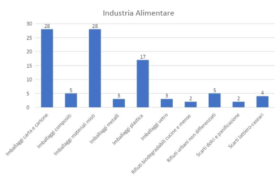 Grafico 9.3 Rifiuti industria alimentare prodotti per tipologia in CmRC Fonte: Elaborazione CURSA su Ecomudweb, 2019