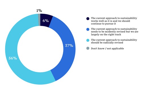 A quasi quarant’anni dal Rapporto Brundtland (Our Common Future, 1987), il percorso verso lo sviluppo sostenibile si trova a un punto critico. Secondo il nuovo studio Sustainability at a Crossroads, realizzato da GlobeScan, Environmental Resources Management e Volans, gli attuali approcci non sono più sufficienti ad affrontare la complessità delle sfide globali. Il Rapporto, basato su un sondaggio condotto su 844 esperti in 72 Paesi, lancia un chiaro segnale: il 93% degli esperti ritiene necessario almeno un cambiamento nelle pratiche di sostenibilità, più della metà chiede una revisione radicale e meno di uno su dieci approva pienamente l'approccio attuale. Gli esperti in Europa sono i più propensi ad auspicare un cambiamento radicale.
